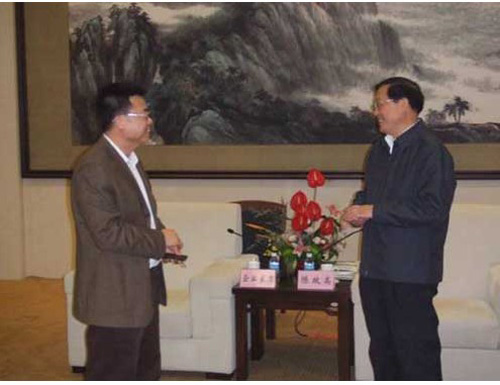 余偉俊董事長(zhǎng)在北京向中國(guó)科學(xué)院副院長(zhǎng)江綿恒匯報(bào)工作,并留影。